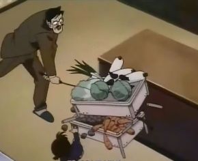 *Al manga, després que en Conan noquegi en Tomofumi amb una tetera de ferro amb les sabates de força a reacció, la puntada li causa un dolor considerable al peu i salta cridant. El dolor de Conan no es mostra a l'episodi d'anime. | |||